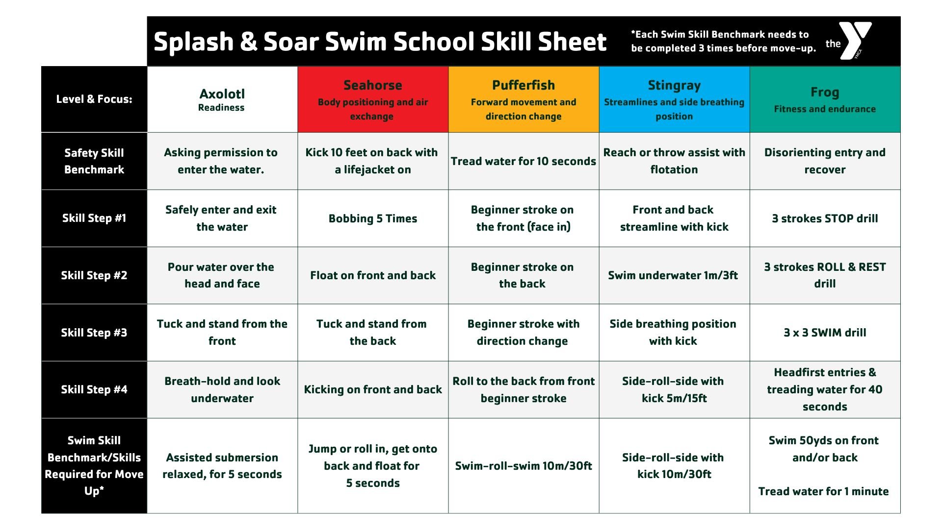 Looking to understand exactly what skills we're looking to cultivate at each level of our Swim School? Read through the Skill Sheets for your child's skill level!